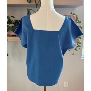 Madewell Blue Pin Striped Square Neck Cotton Top Size M Parisian Chic Capsule