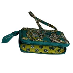 Vera Bradley Turquoise and Green Patterned Wrist Wallet Wristlet Zipper EUC
