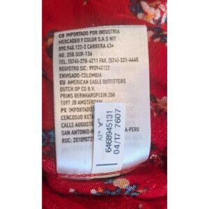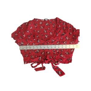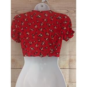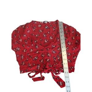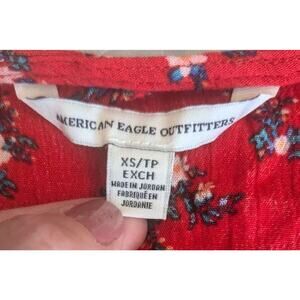 American Eagle Top Womens blouse sz XS Red Floral Tie cropped Button Up
