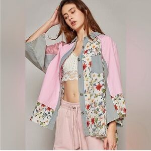 72. 🔥 POL Coral V-Neck Oversized Sweater Hoodie with Granny Square Sleeves