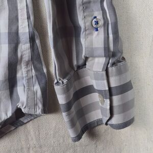 Upgrade your wardrobe with this Gap Non-Iron Slim Fit Dress Shirt, designed for a crisp, polished look without the hassle of ironing. This mens size medium button-up features a classic plaid pattern, long sleeves, and a slim fit cut for a modern, tailored silhouette. Condition: Pre-owned in good condition Small stain on the back collar (see pictures)