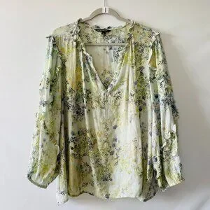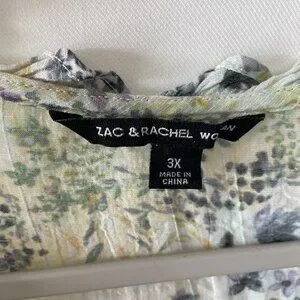 Zac & Rachel Womens Ivory Ruffle Trim Floral Print Preppy Blouse Top Size 3X