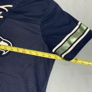 This Majestic Seattle Seahawks Team Blue NFL Football T-Shirt in size XL is perfect for any lady fan looking to show their support for the team in style. The regular fit and comfortable fabric make it a great addition to any woman's wardrobe, while the bold blue color and team logos add a touch of team spirit. Perfect for wearing to games, tailgate parties, or everyday casual wear, this shirt is a must-have for any female Seahawks fan.