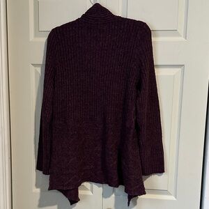 Chic and comfortable cardigan. Rich purple hue. Ideal for layering.