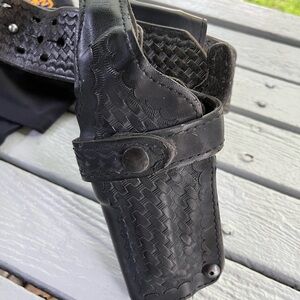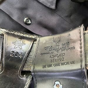 As Compton Police was decommissioned in the year 2000, my uncle who was an PD officer and now part of the LA Sheriff’s department gave me a bunch of cool shit. The belt saw action in the Rodney King Riots and includes a 1911 holster, dual mag holster, cuff holster, and flashlight holster. The uniform shirt is L/XL.