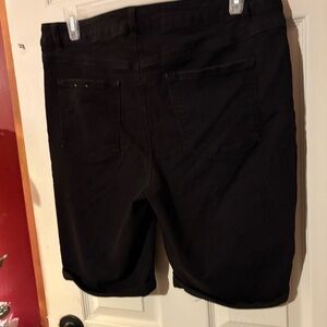 Stylish dark black Bermuda shorts. Ideal for everyday wear. d. Jeans Plus Size Bermuda Shorts with a great stretchy fit! Soft and comfort stretch with slimming technology make this style a favorite! They feel like jeans but stretch like exercise clothing. Cotton / Polyester / Spandex