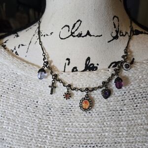 This beautiful Avon necklace features a variety of colorful pendants, perfect for adding a touch of charm to any outfit. The intricate design showcases pink, purple, and orange accents, making it a versatile accessory for any occasion.