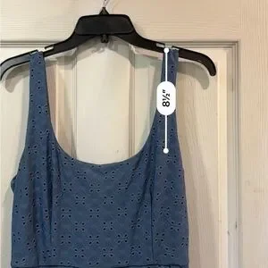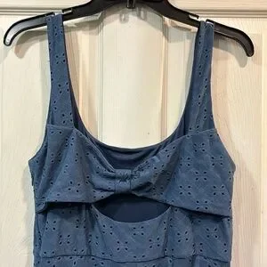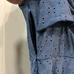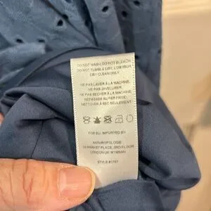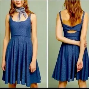 Anthropologie HUTCH Olivia Eyelet Blue Skater Dress Coastal Vacation Medium