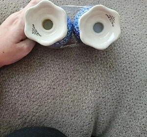 These vintage Pfaltzgraff Summer Breeze decorative salt & pepper shakers feature a beautiful blue and green color scheme with an intricate hydrangea floral pattern that adds a textured appearance. The rounded shape tapers towards the bottom, making them a stunning accent piece for any decor or kitchen table!