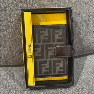 Elegant Fendi Agenda with signature Zucca monogram. Features rich brown and black tones. Comes with box. The item is in excellent condition very minimal signs of use.