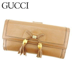 Gucci long Wallet ribbon motif bamboo tassel brown beige leather accessory