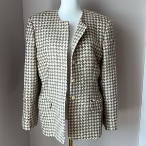 Vintage Prophecy cream and taupe houndstooth blazer jacket.