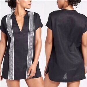 • Slightly roomy fit throughout body, hits at waist with banded detail