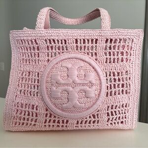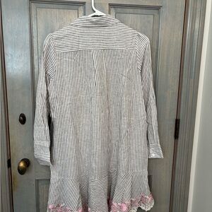 New with tags Tuckernuck Callahan Dress in tan & white stripes with pink and white floral embroidered accents. XS