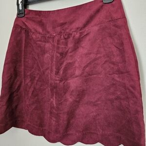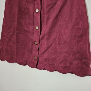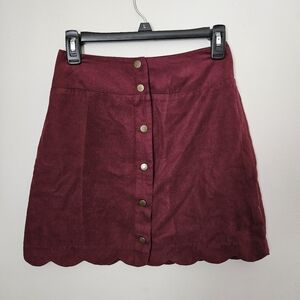 Xhilaration Skirt Burgundy Red Suede Buttons Front Scallop Hem Mini Casual