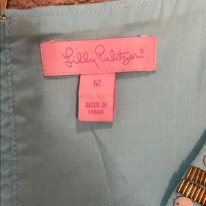 Lilly Pulitzer Aqua Dress with Gold Beaded Neckline
