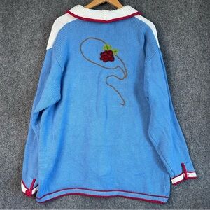 Vintage Storybook Knits cardigan sweater set 2X Cowgirl crochet western rodeo. Darling! Two piece tank and cardigan. Design includes lasso, cowgirl, cowboy boots, spurs, bandana, flowers, contrasting trim, hidden working buttons. has been cold hand laundered, and laid dry. Very good condition. 3 lbs 8 oz