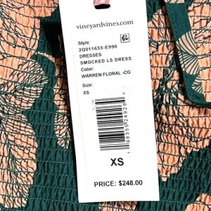 Vineyard Vines Dress Women's XS Warren Floral Long Sleeve Smocked Midi NWT