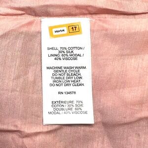 Material: Shell 70% Cotton / 30% Silk; Lining 60% Modal / 40% Viscose