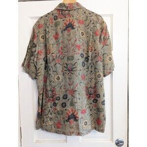 Rare 90s L Ralph Lauren Open Collar Shirt 100 Linen Short Sleeve Floral Pattern