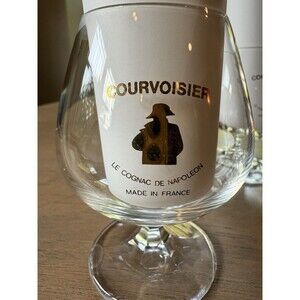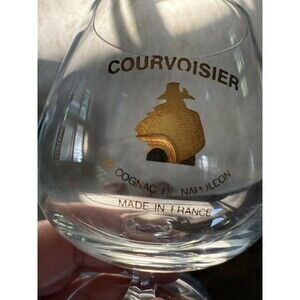 Courvoisier Glasses Brandy Snifter Le Cognac de Napoleon Vintage Set of 2. 3 3/4in height x 2 5/8in. Excellent Vintage used condition. No chips or cracks. One glass has some of the gold lettering worn off on the front. Please see pictures. These original advertising glasses feature an iconic Courvoisier brand logo.