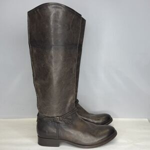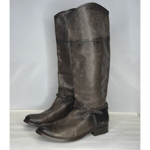 Frye Knee High Riding Boots Womens Size 7 Brown Leather Distressed Biker Pull On