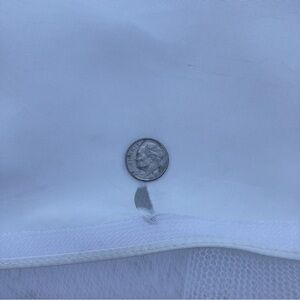 This is a wounded bird: has some tears at lace on left hip area, front seam at waist has come undone and there is a tear in the hem, along with some general scuffs at hem in under layer.