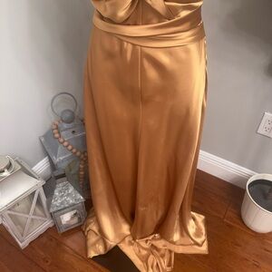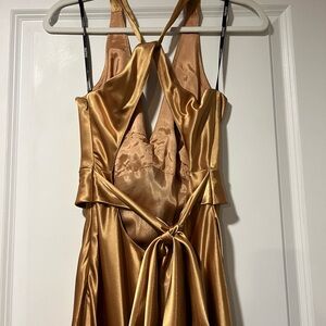 Stunning backless design with a luxurious gold finish. Perfect for elegant evenings.