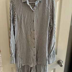 Chic pencil skirt with bold stripes. Features button details and front pockets. Perfect for a stylish look.