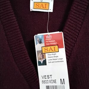 Stay stylish and warm with this maroon sweater vest. Perfect for layering, this vest adds a touch of elegance to any outfit.