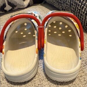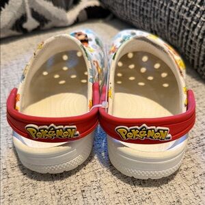 Fun Pokémon design for kids. Bright red and white colors. Comfortable and easy to wear. These are preloved and the sonic, spiderman, and charizard croc charms are included.