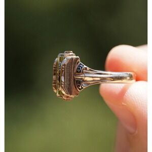 This is a beautiful gold women's class ring. It's made out of 10k solid gold. It's a ring size 5.75. It weighs a total of 4.2 grams. The face of the ring measures approximately 1/2" tall. It was for graduation year 1955 as stated on the face of the ring. The ring is very flattering when worn. Let me know if you have any questions, I'm more than happy to answer them. Thanks for stopping by!