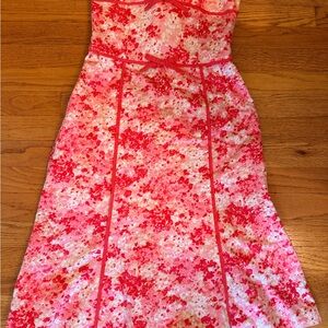 Chic strapless design. Vibrant floral pattern. Ideal for special events.
