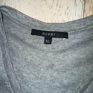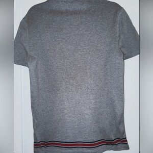 Gucci grey Logo Stripe V-Neck Tee T Shirt Men’s XL red & navy stripes