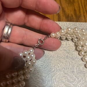 Stylish pearl necklace, bracelet, and earrings set. Ideal for any event.