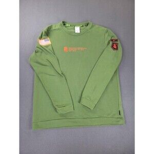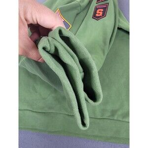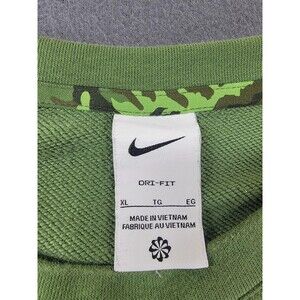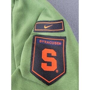 Nike Syracuse University Shirt Mens XL Green Dri-FIT On-Field Condition: Gently worn, no visible flaws. Clean overall with bright graphics and patches. Features embroidered and patch details including: Syracuse University logo, 'Syracuse, NY, USA Est. 1870' chest embroidery, American flag patch on left sleeve, Nike Swoosh and Syracuse S patches on right sleeve. Material: 61% Cotton, 39% Polyester for comfort and moisture-wicking (Dri-FIT technology). Color: Olive/army green with orange accents and patches. Tag size: XL (Mens) Approximate flat measurements (from photo): pit to pit 24 inches, back length 28.5 inches. Style code: DQ2109-328 Made in Vietnam Camouflage pattern detail inside collar Special On-Field Nike x Syracuse collegiate pullover - hard to find color and patch combo