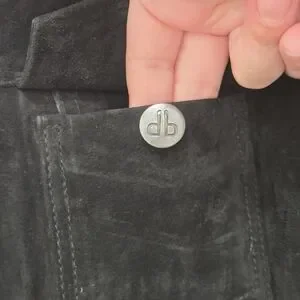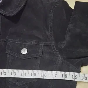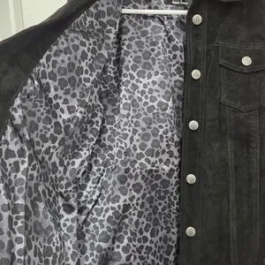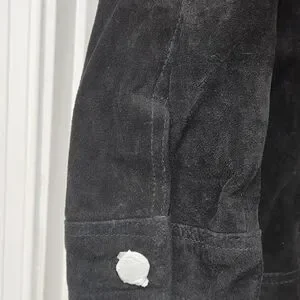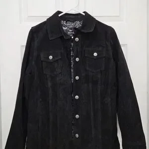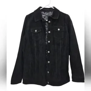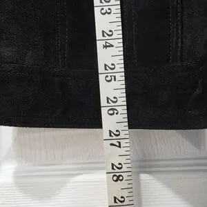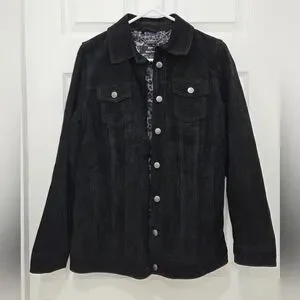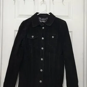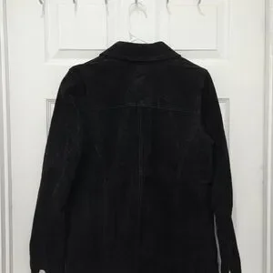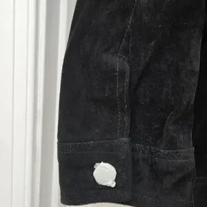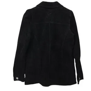 Dennis Basso Suede Leather Button Front Black Jacket Women’s Sz Small Washable