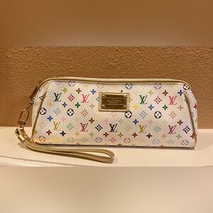 Beautiful small monogram wallet. Small coin zipped compartment, with plenty of other compartments for bills and cards. Excellent condition on hardware and leather.