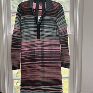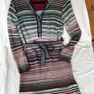 M Missoni Striped Long Sleeve Sweater Dress with Belt