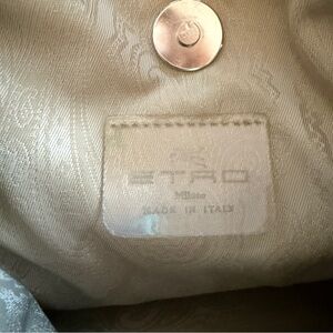 This vintage Etro paisley mini bag is crafted from long lasting and easy to clean nylon. The iconic paisley pattern and the Etro logo plate on the front are consistent with designs produced by Etro in earlier decades, particularly the 1990s and 2000s.