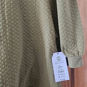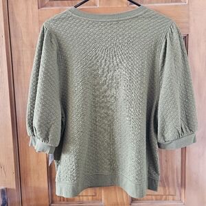 Time and Tru women's puff sleeve, quilted top, size L 14-16. Olive green color, quilted texture, puff style sleeves, elastic hem. Has original tags. Excellent new condition.