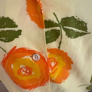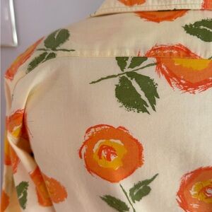 Brighten your wardrobe with this floral print button-up top. Featuring vibrant orange and green hues, it's perfect for a fresh, stylish look.