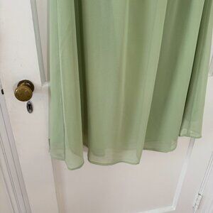 New, without tags! This beautiful tea-length pastel mint-green skirt is gathered at the elasticized waist for comfort, with a sheer chiffon overlay that drops just an inch or two below the poly lining for feminine, sexy, contemporary style. It matches a flirty green shiny ruffled top that's also posted in my closet for a luxurious looking combo - bundle them together for a 15% discount! Wash and dry, size M, measurements in photos, new condition, perfect, never worn or laundered.