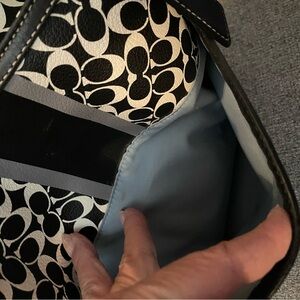 Elegant Coach Chelsea signature Heritage Tote the tote is with signature pattern. Black and cream design. Ideal for daily use. In beautiful shape. No blemishes on the outside or you will be so happy you have this in your collection. Around 2010 era bag considered within y2k era bag