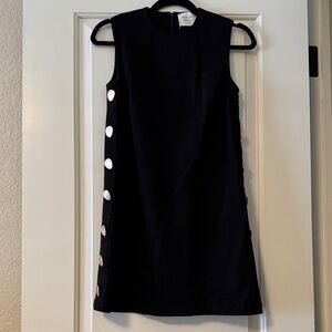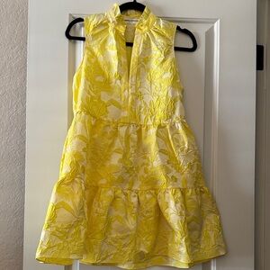 Bright pink mini dress with bold floral design. Features a sleeveless cut and vibrant colors.