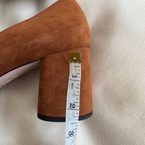 PRADA Ornament-embellished Suede Loafer Pump In Palissaedro, size 40. Fits true to size. Prada's late 60's/early 70's granny-core vibes never go out of style and I LOVE that about her work. Pair with little socks and knit underwear (not me, personally, but someone young and hot), or with a wild printed pant and a bold knit, or wide leg jeans and a turtleneck. There's so many ways to style Prada - these offer a lot of options for the girl who gets the brand's post-modern vibe. 2.5 inch heel height. Never worn!