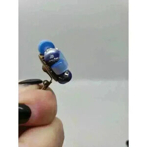 Vintage Earrings Blue Cats eye Moonglow Beaded Clip On Japan 1950s Cats Eye