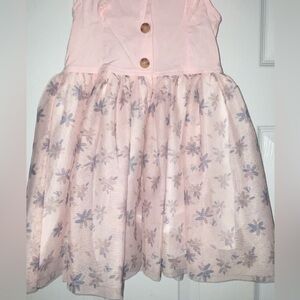 Adorable blush dress with charcoal floral pattern. Ideal for casual outings.