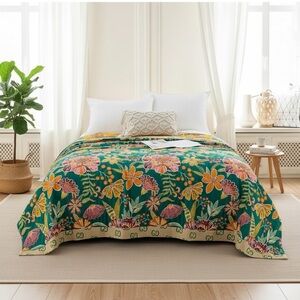 NEW Anthro Blue Jungle Multicolor Boho Queen / King Bedding Duvet & Sham Case