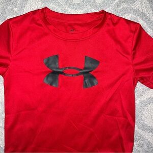 Vibrant red tee with bold black logo. Soft fabric for active play. Ideal for casual outings.